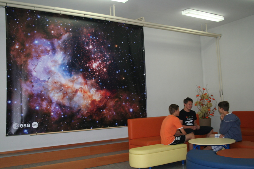 Plakat ESA/Hubble, ki sta ga ob 25. obletnici vesoljskega teleskopa Hubble pridobila Gimnazija Murska Sobota in AD Kmica, je pričel z gostovanjem po slovenskih šolah. Čudovita zvezdna kopica Westerlund 2 je krasila ta teden skupne prostore OŠ Turnišče.